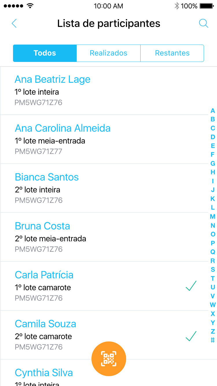 Realize o check-in dos participantes confirmados através da leitura do QR Code ou de forma manual