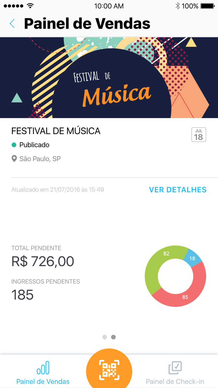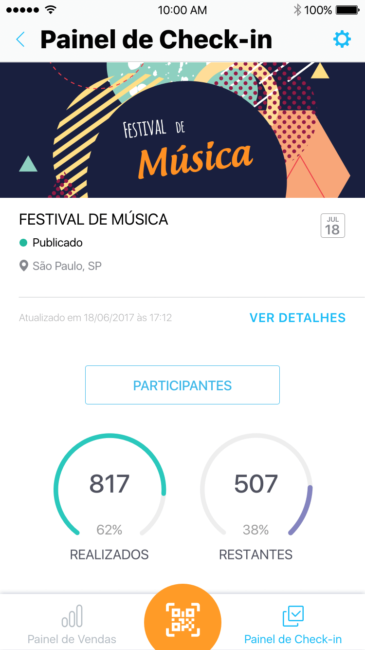 Veja a quantidade de ingressos ou inscrições já confirmadas e tenha o controle das vendas onde estiver