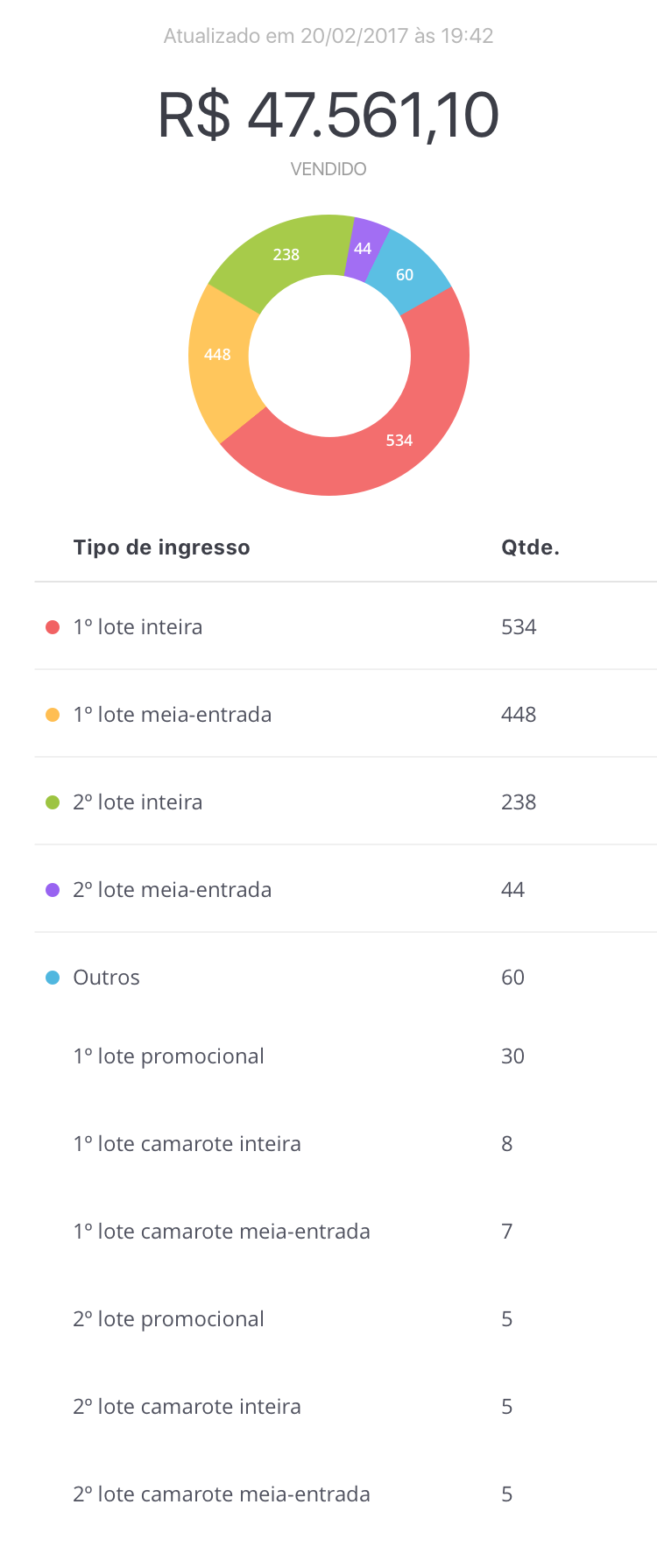 Veja a quantidade de ingressos ou inscrições vendidas