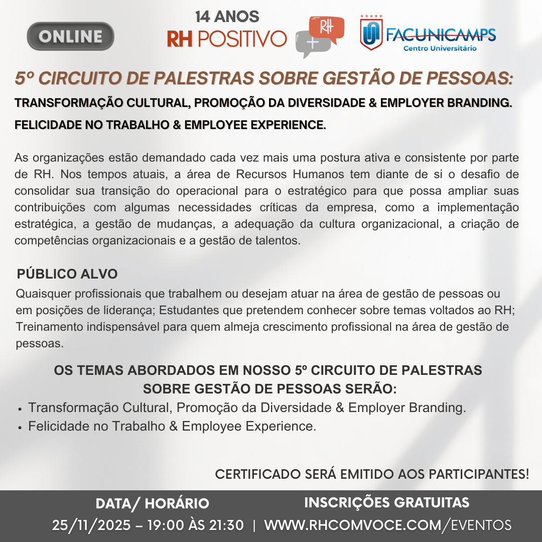 Cancelamentos de pedidos serão aceitos até 7 dias após a compra, desde que a solicitação seja enviada até 48 horas antes do início do evento.