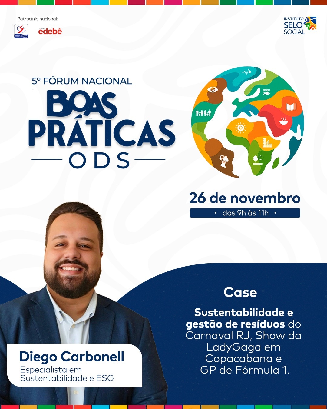 Palestrante: Diego Carbonell - especialista em Sustentabilidade e ESG. Diretor de Sustentabilidade da Liga RJ
