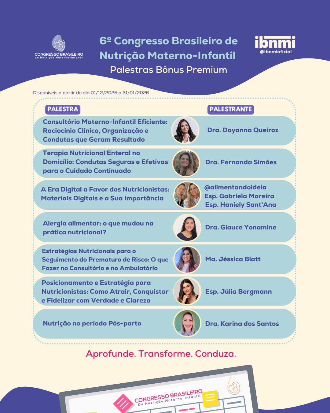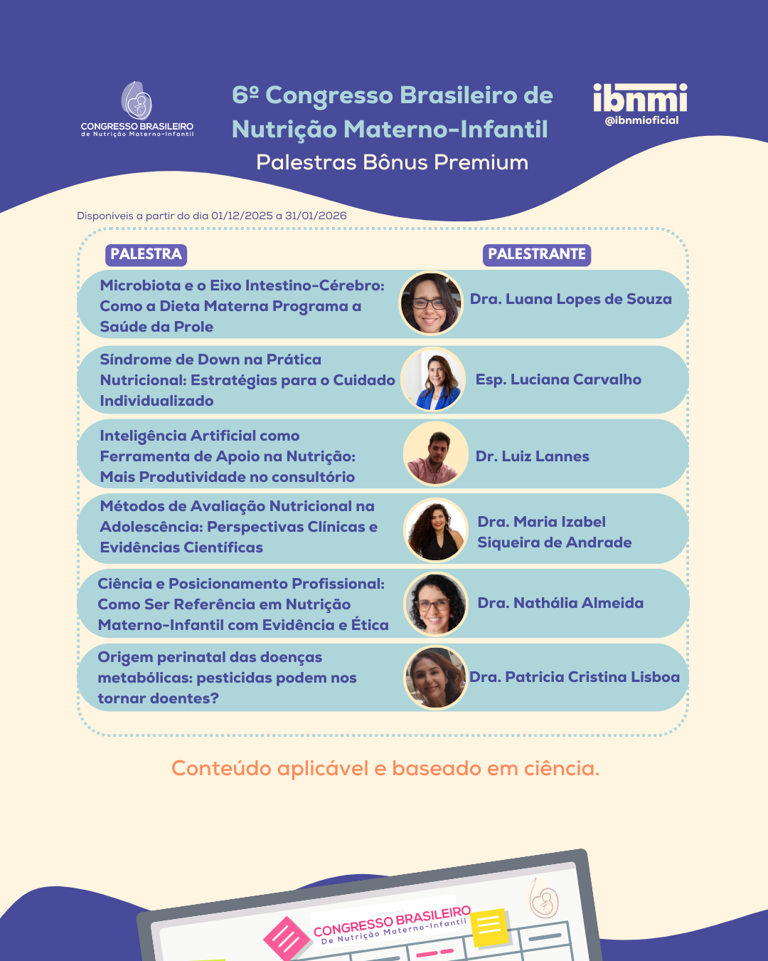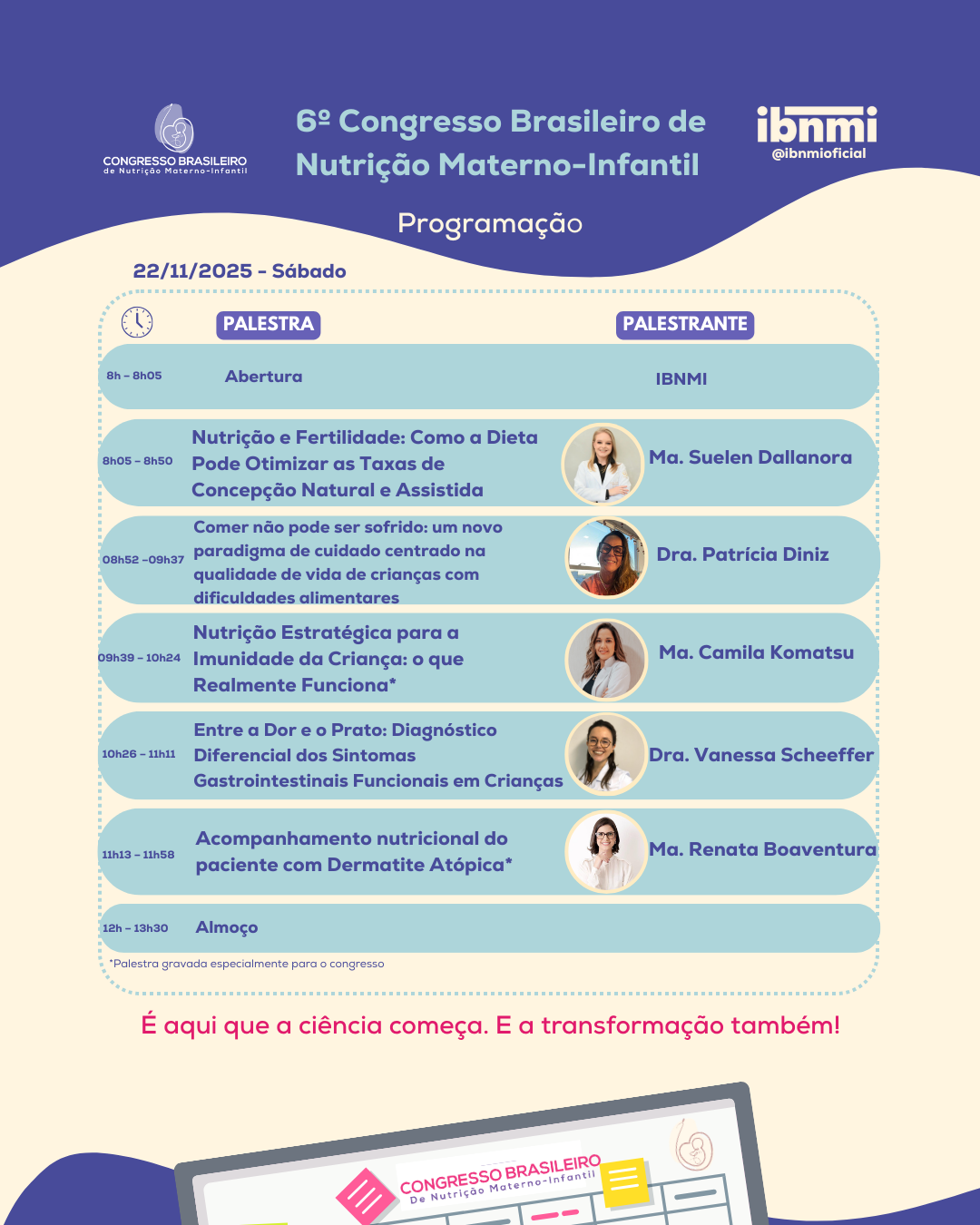 Esta é uma oportunidade única de se atualizar com profissionais reconhecidos por sua expertise e contribuição técnica, em um encontro que reúne o que há de mais relevante para a prática clínica e a pesquisa em nutrição materno-infantil.