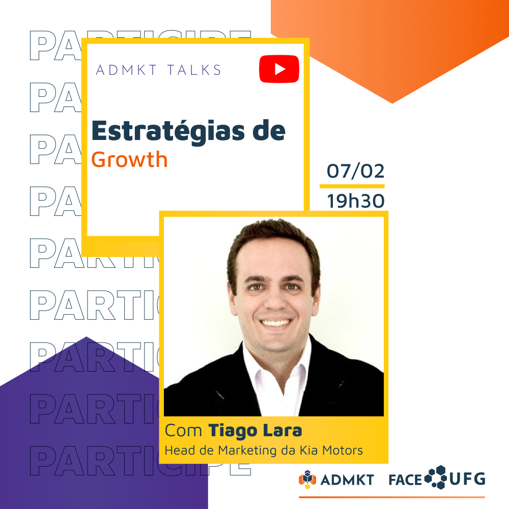 No dia 07 de fevereiro (terça-feira), às 19h30min, apresentaremos a palestra “Estratégias de Growth”, com Tiago Lara, head de marketing da Kia Motors.