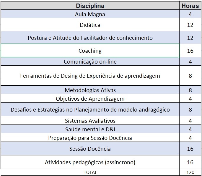 Carga horário total = 120 horas