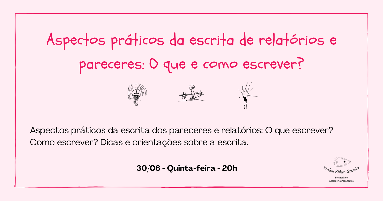 30/06 - 20h - Aspectos práticos da escrita dos pareceres e relatórios: O que escrever? Como escrever? Dicas e orientações sobre a escrita.