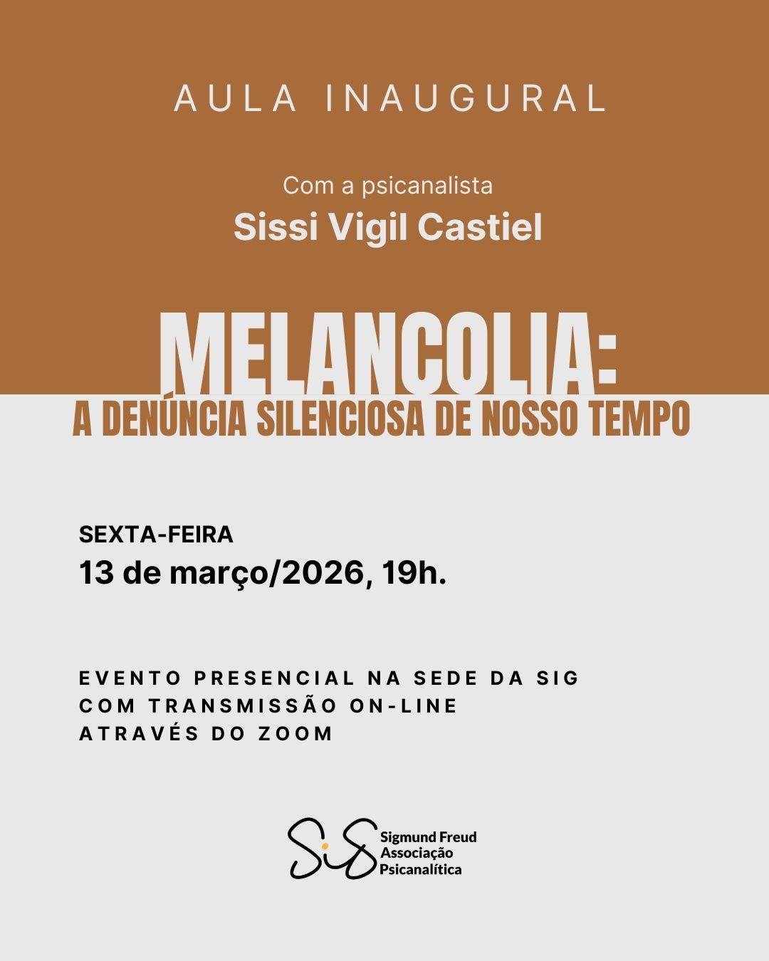 A Sigmund Freud Associação Psicanalítica é uma instituição de Psicanálise, comprometida com a formação de psicanalistas e a produção de conhecimento no diálogo com outros saberes. Oferece diferentes modalidades de participação: clínica de atendimento psicanalítico, produção e publicações científicas, intervenções sociais, estágios em Psicologia, investigação em Psicanálise e parcerias institucionais. Novo endereço: Rua Dr. Timóteo, 752, Moinhos de Vento, Porto Alegre sig.org.br / [email protected]