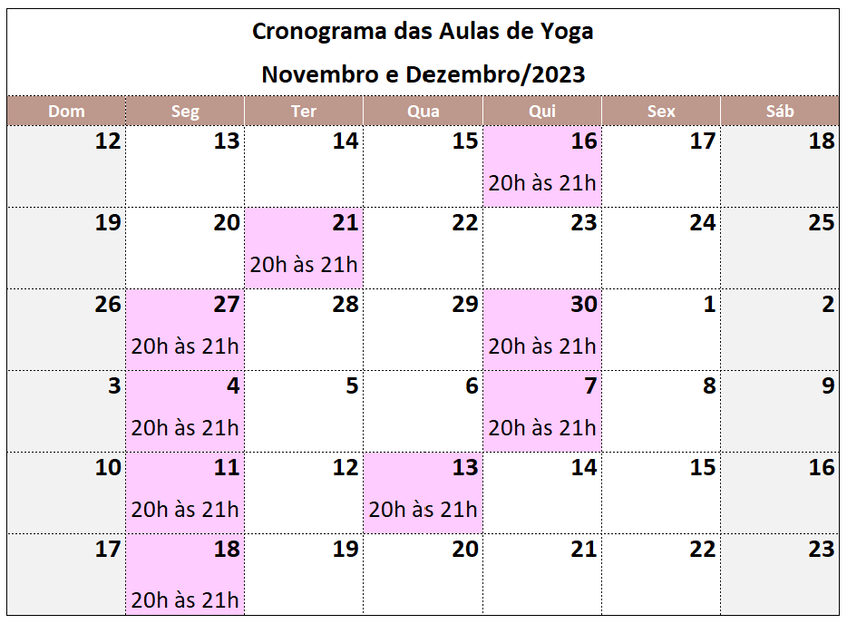 As aulas são conduzidas no modelo híbrido, presencial e online, conforme o cronograma abaixo: