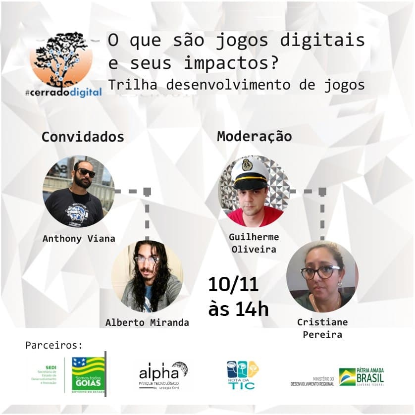 O Polo Cerrado Digital que faz parte das Rotas de Integração Nacional do Ministério do Desenvolvimento Regional, possui um Grupo de Trabalho voltado para Games, e vem realizar em parceria com o AlphaParqueTec, a SEDI GO e a Associação de Games - BRING Game Dev este encontro de bate papo sobre o tema: O que são jogos digitais e seus impactos.