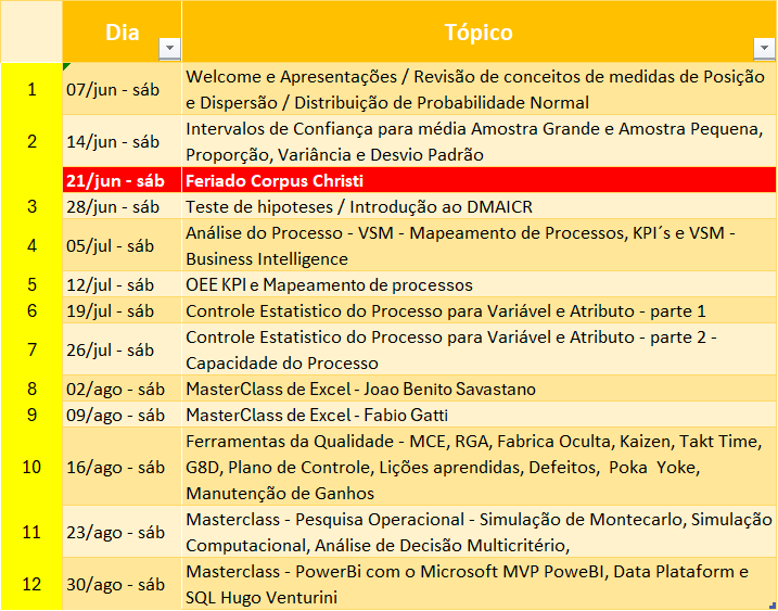 Venha participar do Certificação Lean Six Sigma Black Belt com Reforço + Revisão de Estatística + Pesquisa Operacional + Master Class com João Benito Savastano Excel MVP Microsoft, Fábio Gatti Excel MCT Microsoft e Hugo Venturini Data Plataform MVP Microsoft