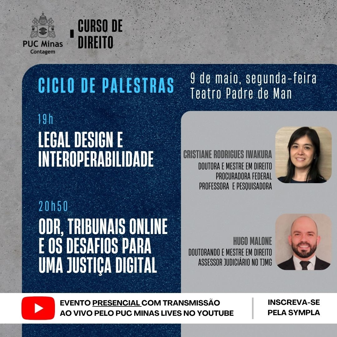 O curso de Direito da PUC Minas - Contagem convida para seu Ciclo de Palestras, a ser realizado nos dias 09 e 10 de maio.