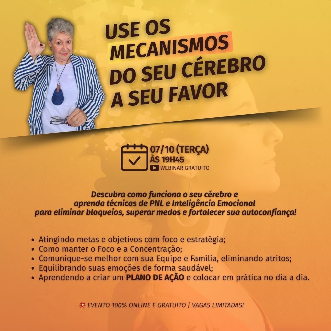 Você está convidado(a) para o webinar gratuito: Como Eliminar a Autossabotagem, no dia 07/10 às 19h45, ao vivo no YouTube.
