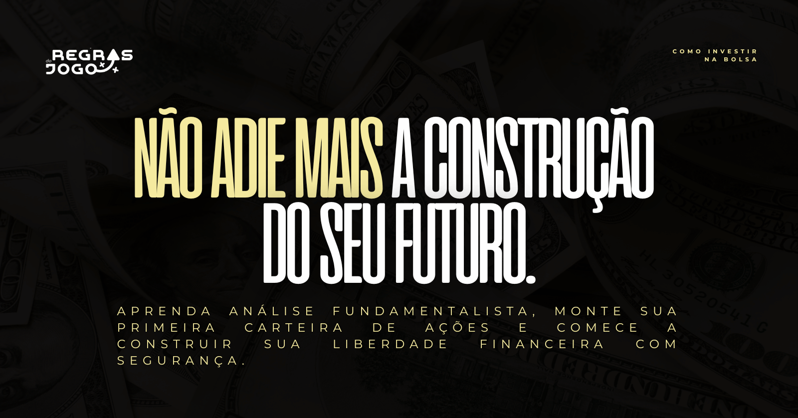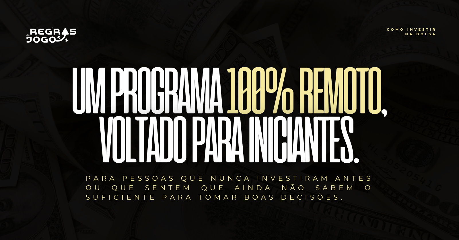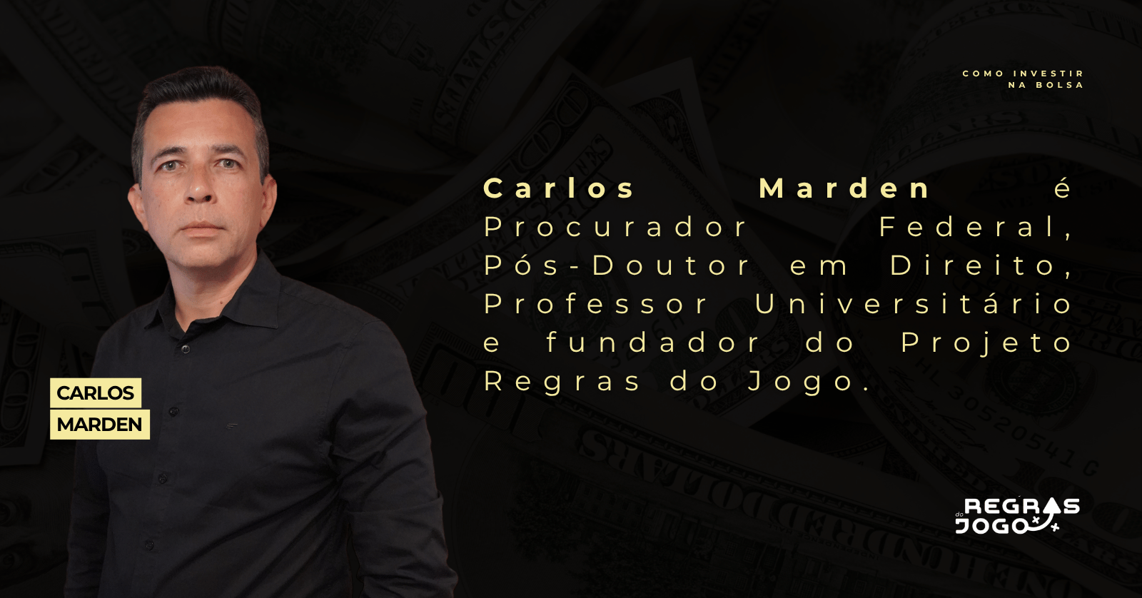 Este curso é uma iniciativa do Projeto Regras do Jogo, trazendo a mesma abordagem direta e prática para o universo dos investimentos, ministrado pelo professor Carlos Marden – Instrutor responsável pelo Projeto Regras do Jogo.