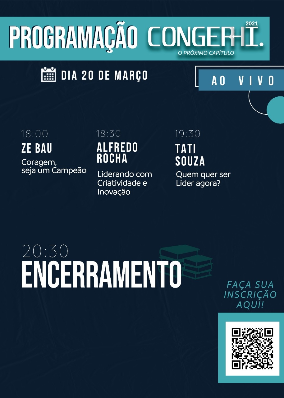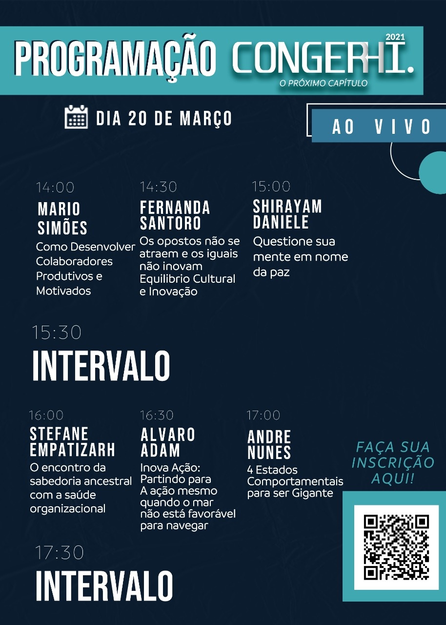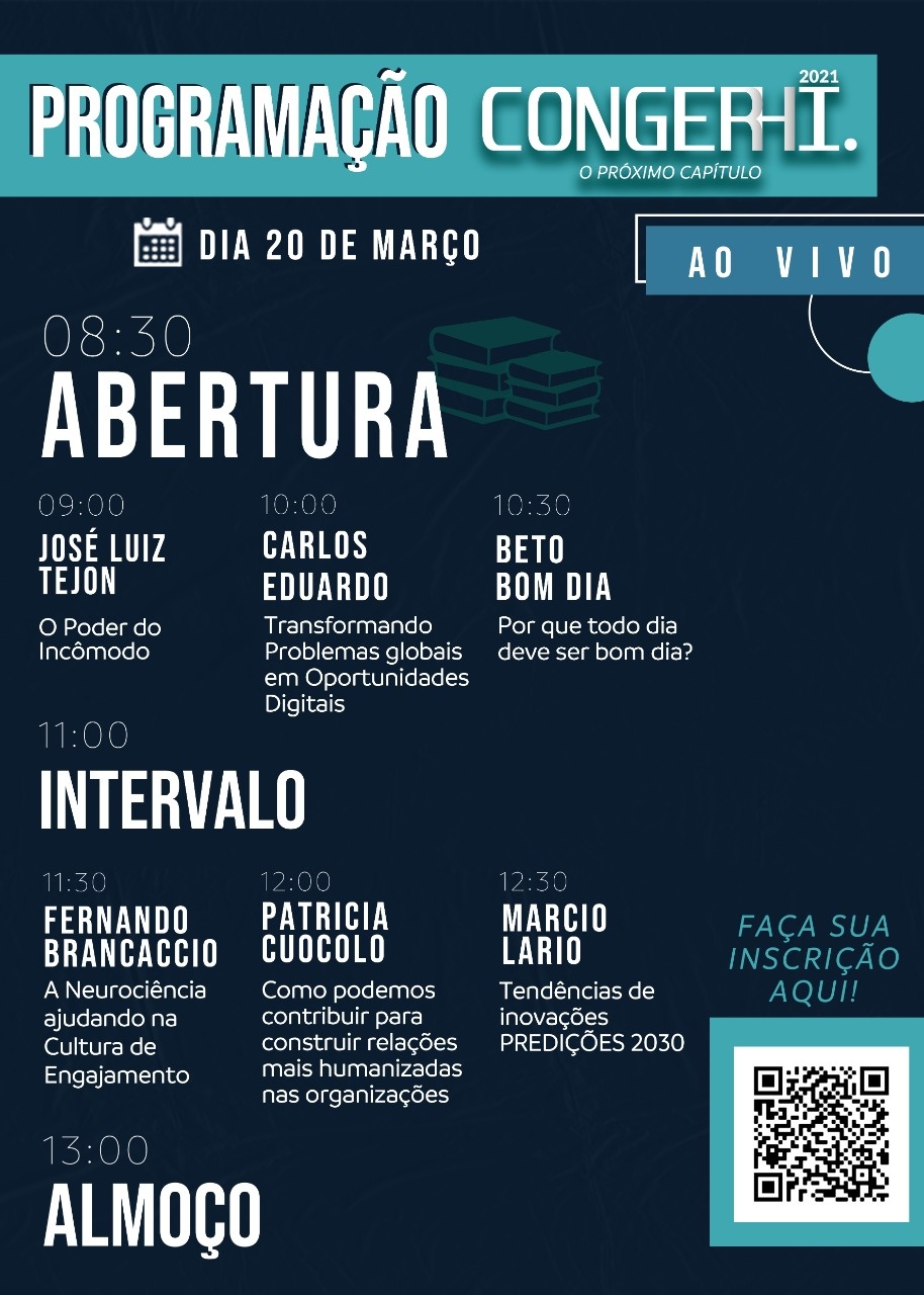 - 16, 17 e 18 de março: trilhas gravadas + 90 dias para assistir todas as palestras (https://congerhi.eadplataforma.com)