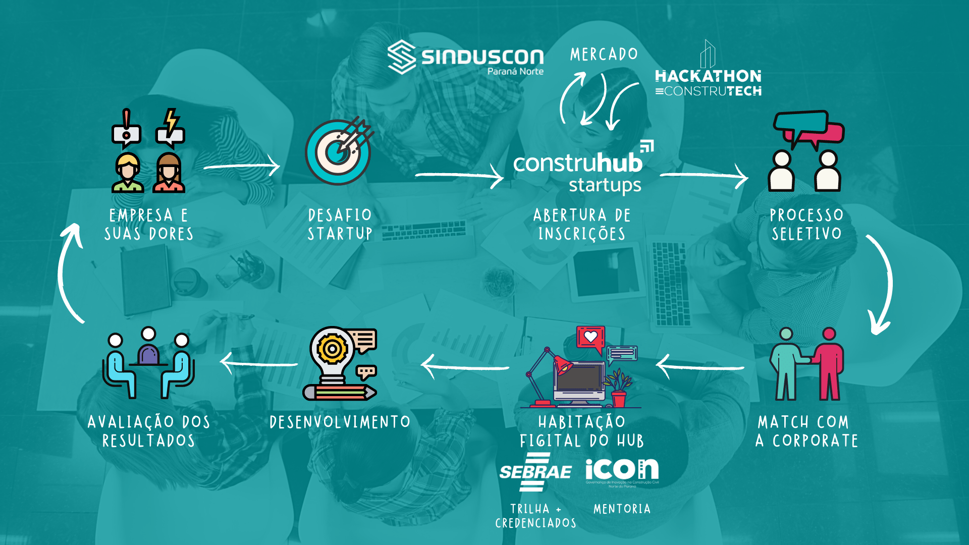O Construhub é um projeto do Sinduscon PR Norte em parceria com o Sebrae, com o apoio da Unifil e promoção iCON.