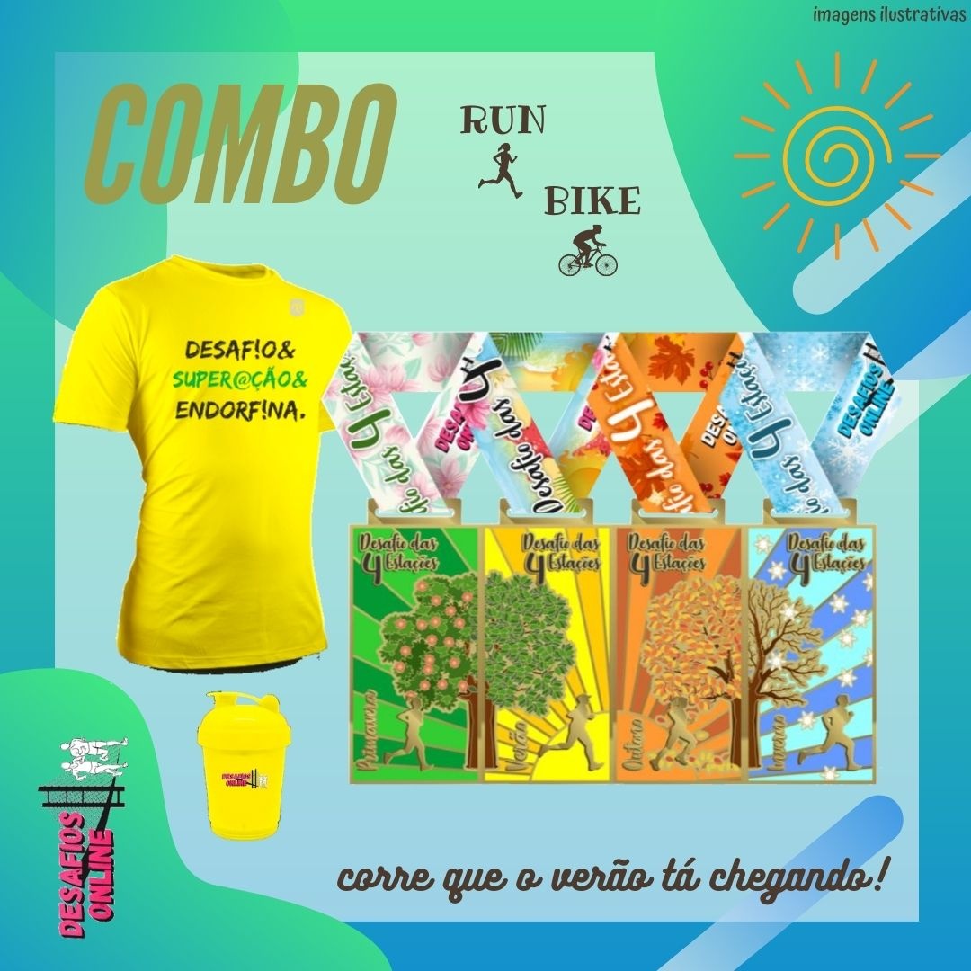 Na opção triple é possível combinar corrida e bike, por exemplo, você pode optar por realizar 5km e 15km de corrida e 60km de bike!