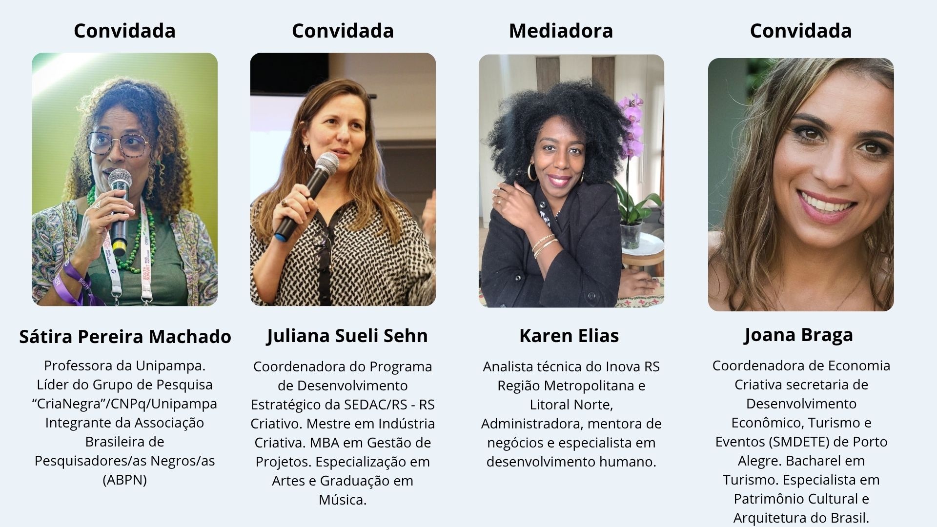 Para aprofundar esse tema, convidamos especialistas que atuam em diferentes frentes da economia criativa da pesquisa acadêmica à gestão pública e à articulação de políticas estratégicas. Com olhares diversos e complementares, elas trarão reflexões práticas e potentes sobre como a criatividade gera impacto real na vida das pessoas e nos territórios.