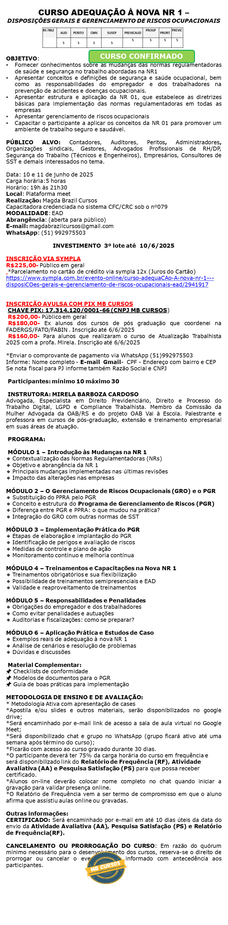 Cancelamentos de pedidos serão aceitos até 7 dias após a compra, desde que a solicitação seja enviada até 48 horas antes do início do evento.