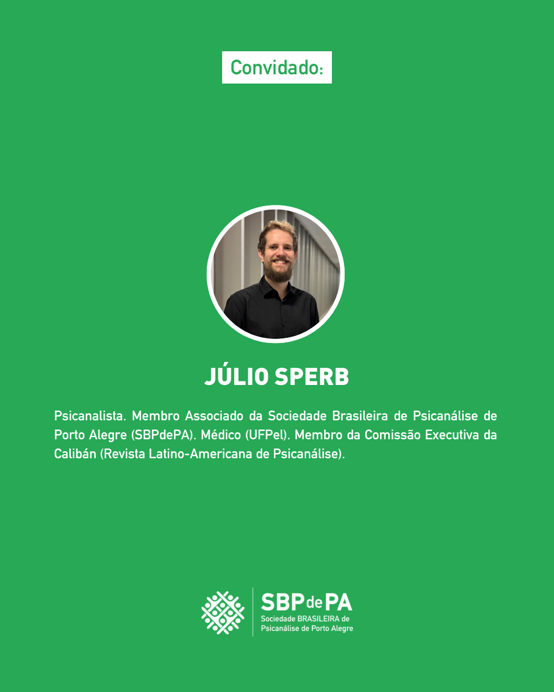 A atividade será ministrada por Júlio Sperb, psicanalista, Membro Associado da SBPdePA e da IPA, e é destinada ao público interno e externo, incluindo profissionais de outras áreas, reafirmando o compromisso da SBPdePA com a formação contínua, a troca de saberes, o diálogo interdisciplinar e o fortalecimento do pensamento psicanalítico.