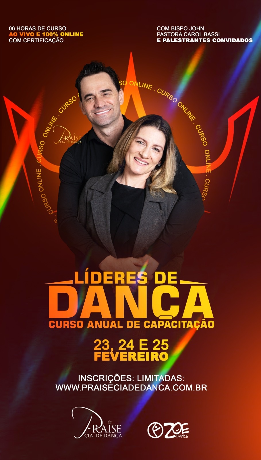 É com grande alegria que anunciamos o nosso curso 100% online de capacitação e formação de líderes de dança cristã, promovido pelo Bispo John e pela Pastora Carol Bassi.