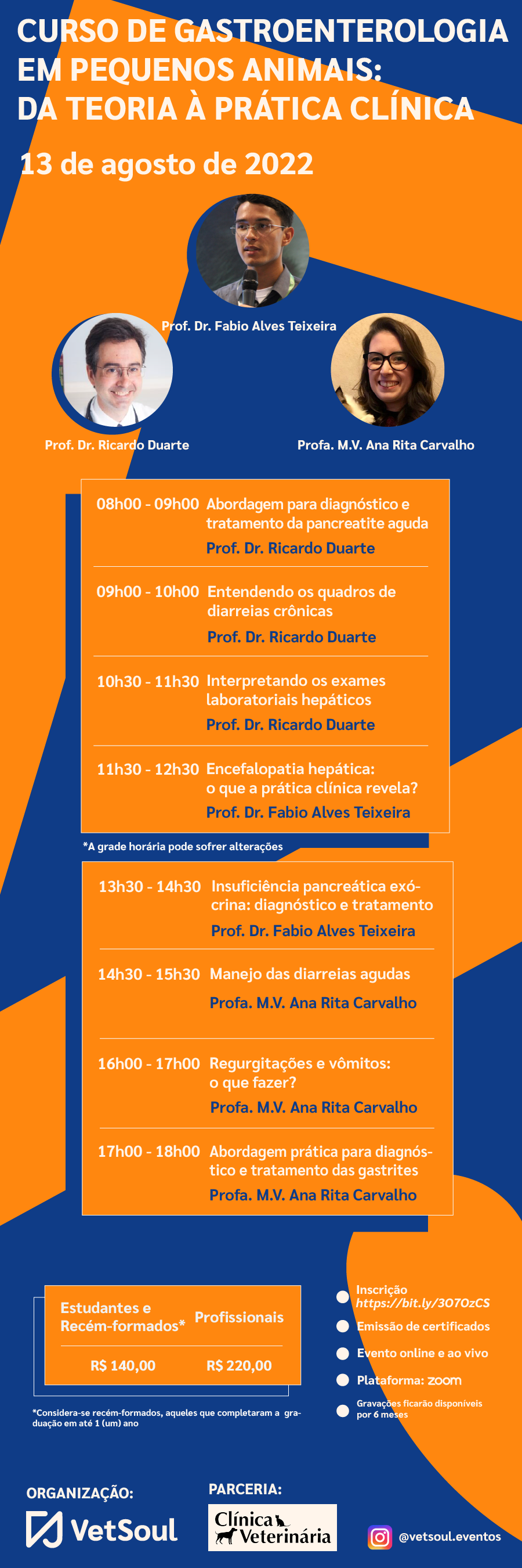 CURSO DE GASTROENTEROLOGIA EM PEQUENOS ANIMAIS: DA TEORIA À PRÁTICA CLÍNICA