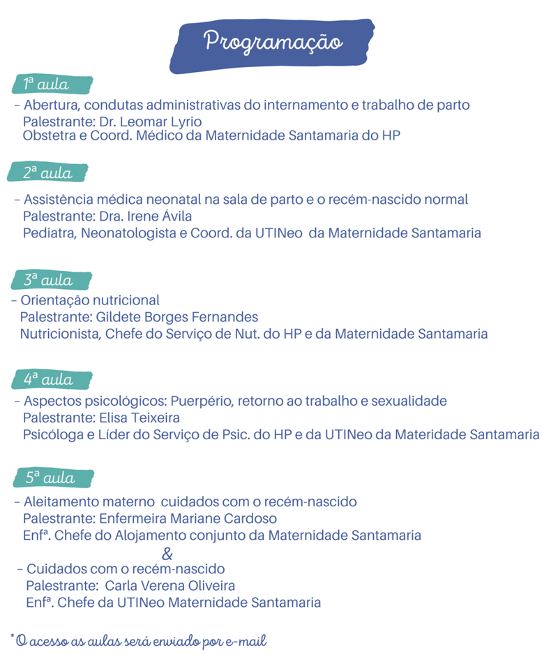 A Maternidade Santamaria oferta mensalmente o seu Curso de Preparação para