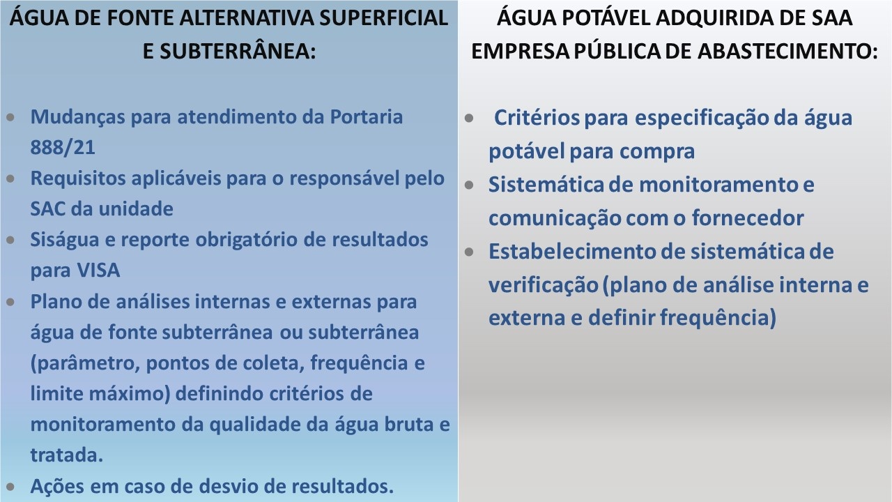Toda empresa da cadeia produtiva de alimentos utiliza água. Algumas utilizam água de fontes alternativas, que demanda controles mais intensificados. Então, neste cenário regulatório, são obrigadas a: