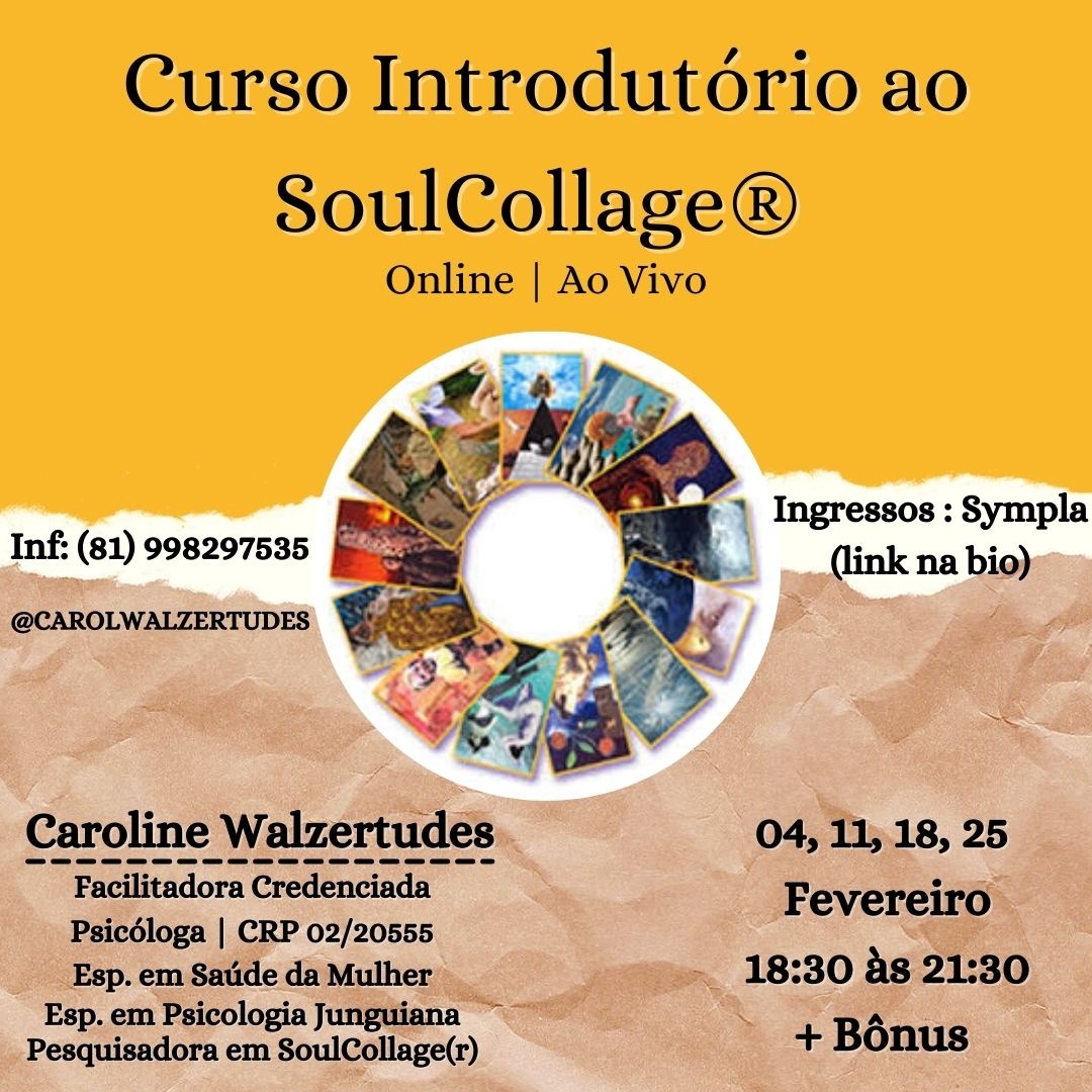 O Soulcollage®️ é um método potente de autoconhecimento, que nos permite navegar em nosso mundo interno de forma simples e profunda através da colagem de imagens. Um modo profundo de construir imagens criativas que expressam as muitas faces da alma de cada um. Foi criado na década de 80 pela norte americana Seena Frost e segue ganhando espaço no Brasil e no mundo.