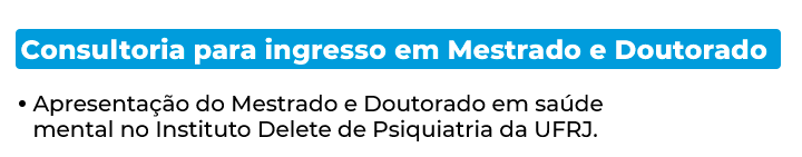 12/DEZ: APRESENTAÇÃO DO MESTRADO E DOUTORADO EM SAÚDE MENTAL NO INSTITUTO DE PSIQUIATRIA DA UFRJ.