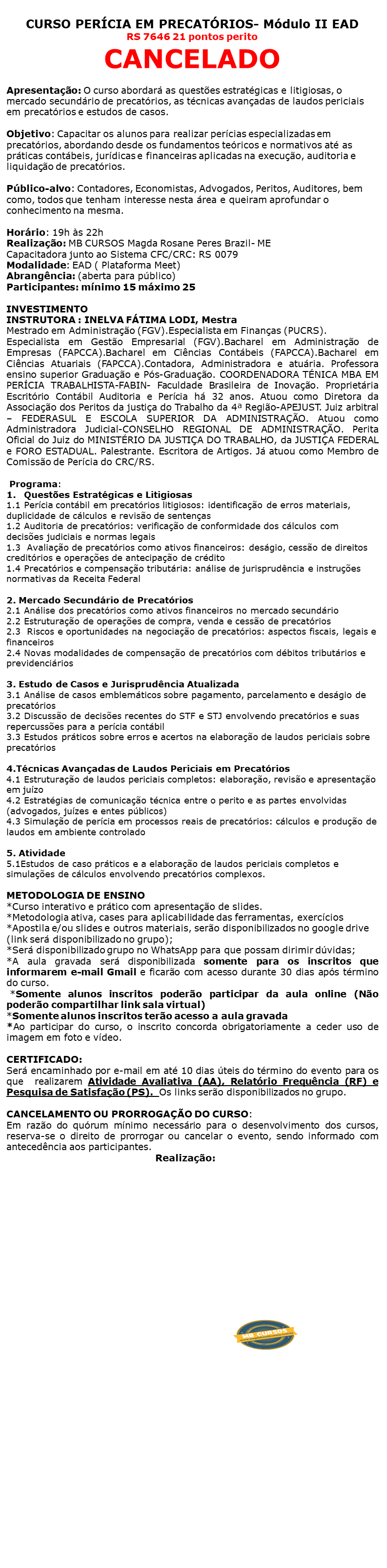 Cancelamentos de pedidos serão aceitos até 7 dias após a compra, desde que a solicitação seja enviada até 48 horas antes do início do evento.