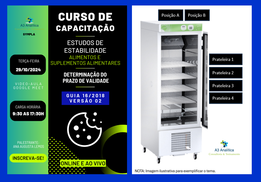 Objetivo: Este curso tem como objetivo capacitar os participantes para executar, planejar, elaborar e avaliar Estudos de Estabilidade em produtos terminados da categoria Suplemento Alimentar e/ou Alimentos, seguindo a premissa do Guia 16/2018 da Anvisa, versão 02.