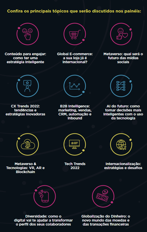 O Digitalks Brasil e o Digitalks Portugal unem-se novamente em um evento totalmente digital e gratuito, o Digitalks Global Summit 2021, que acontece nos dias 13, 14 e 15 de dezembro. O formato conectará negócios, tecnologia e pessoas de todo o mundo em três dias de muito conteúdo voltados para inovação e novos negócios digitais.