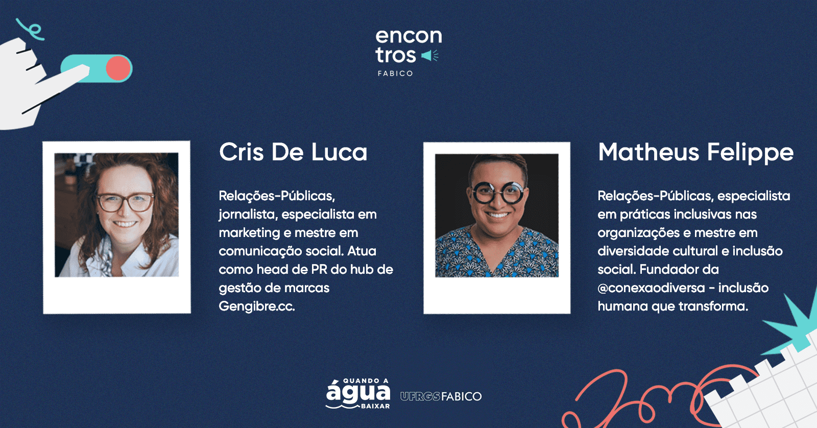 Por isto, ainda há tempo para compreendermos verdadeiramente o que a diversidade e a equidade podem nos ensinar. E com esta convicção, a primeira edição do Encontros Fabico convida dois egressos fabicanos que têm trajetórias nestas temáticas para o bate-papo.