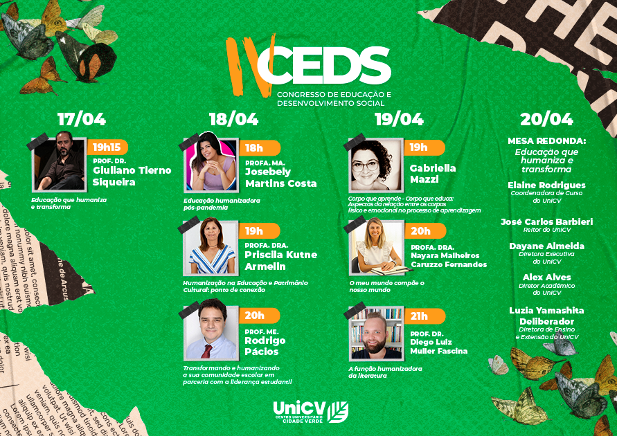 Esse evento tem como objetivo problematizar a educação e desenvolvimento social, este ano sob o tema: Educação que humaniza e transforma, por meio do convite aos alunos das licenciaturas, professoras da rede de ensino e alunos de pós-graduação para discussões relevantes na área, visando contribuir para o desenvolvimento de práticas pedagógicas eficazes.