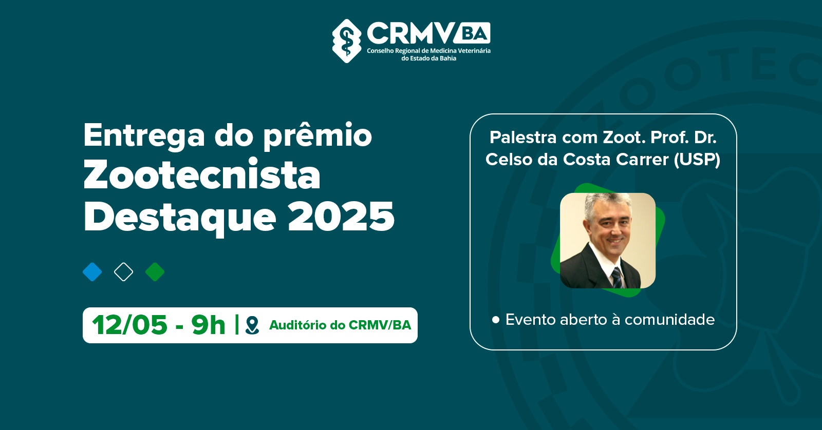 Entrega do Prêmio Zootecnista Destaque na Bahia 2025 ao professor doutor Gleidson Giordano Pinto de Carvalho e Palestra com o Professor Doutor Celso da Costa Carrer ( Evento Presencial)