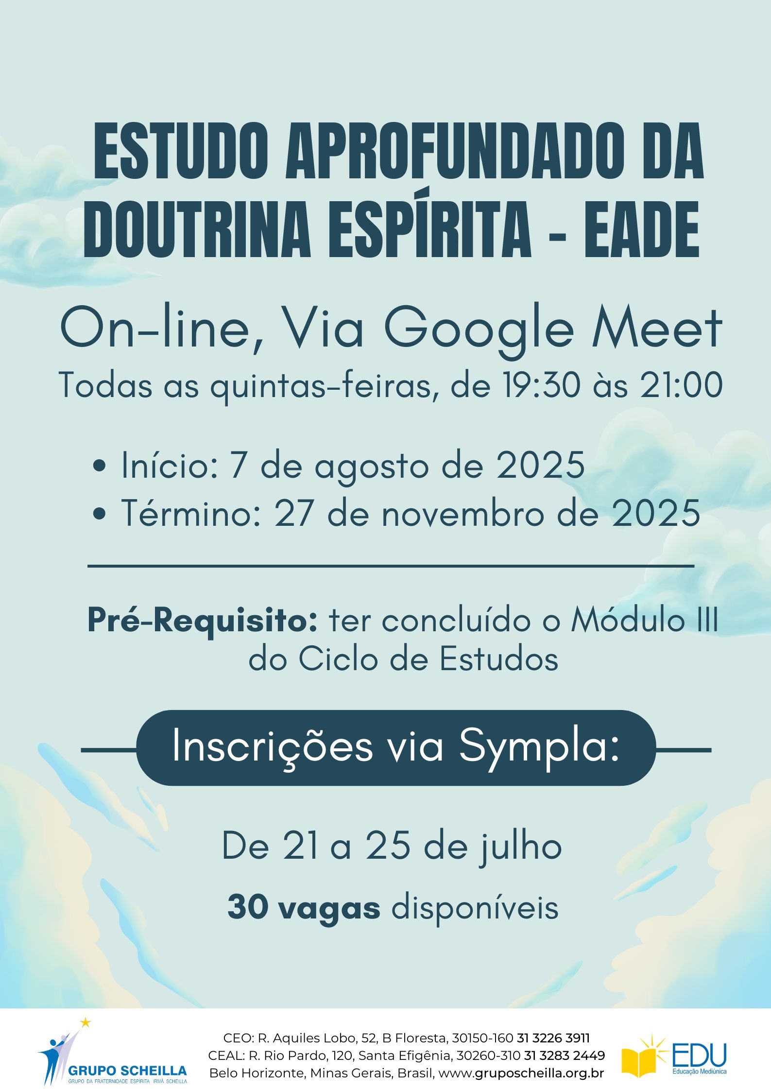 Solicitamos aos interessados que se inscrevam apenas se tiverem a certeza de que poderão estar presentes no estudo, visando oportunizar a participação de todos.