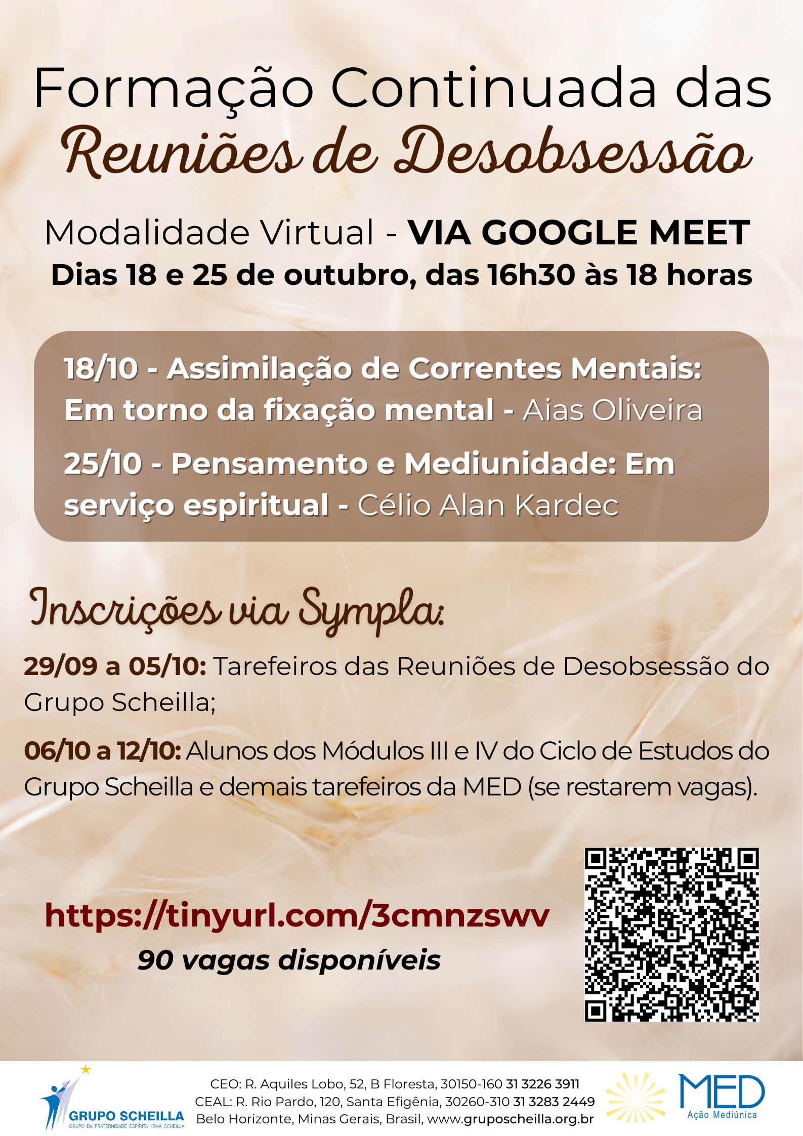 Esta Formação Continuada é destinada aos Tarefeiros das Reuniões de Desobsessão e demais trabalhadores da MED do Grupo Scheilla.