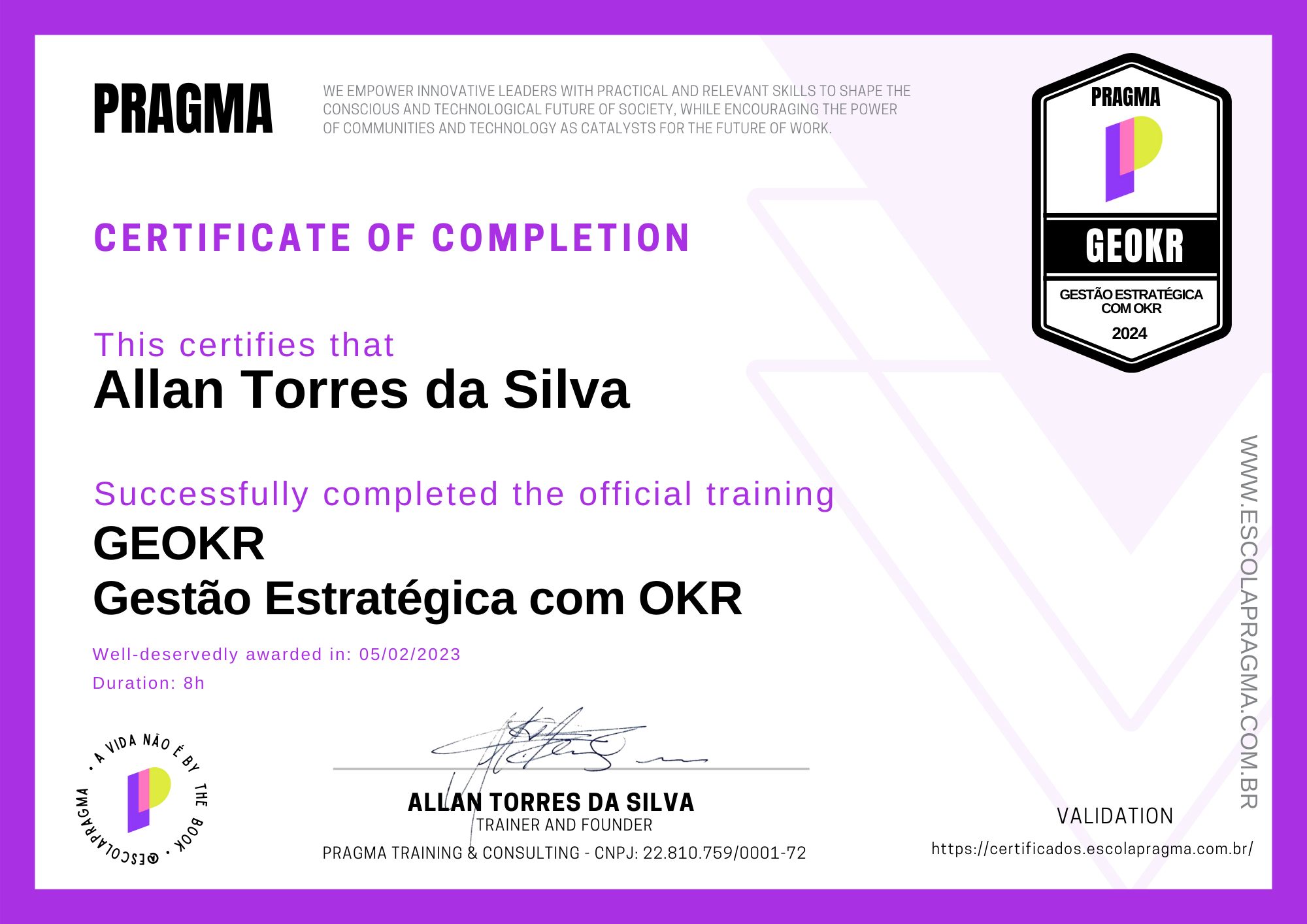 • Preencha a lacuna estratégica: Destaque-se no mercado, dominando a metodologia OKR e atendendo à crescente demanda por profissionais especializados.