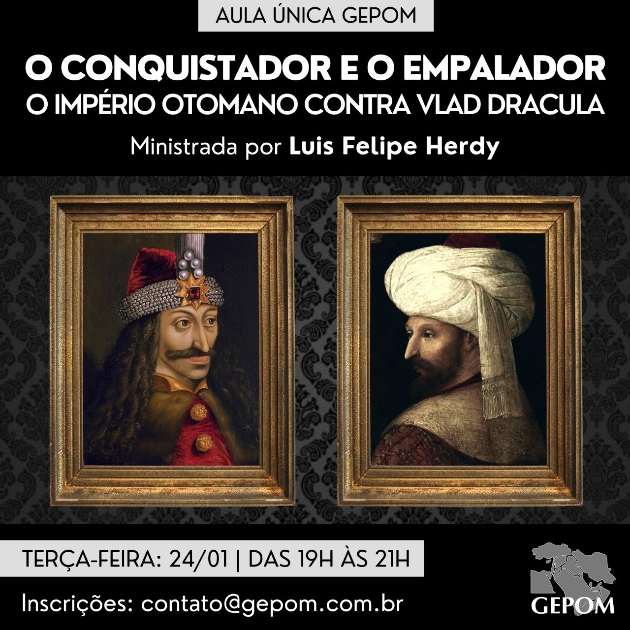 No dia 24/01, às 19h, o Grupo de Estudos e Pesquisa sobre o Oriente Médio (Gepom), oferece o curso em aula única “O Conquistador e o Empalador: o Império Otomano contra Vlad Dracula”.
