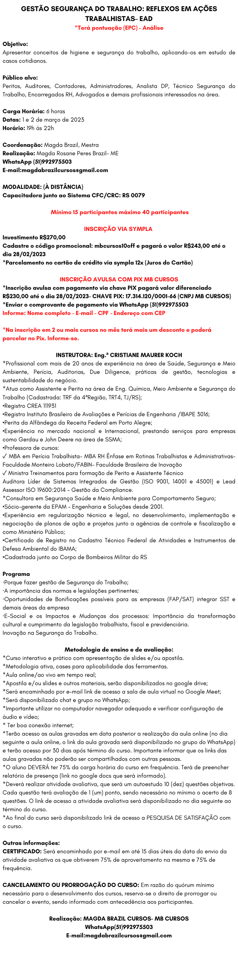 Cancelamentos de pedidos serão aceitos até 7 dias após a compra, desde que a solicitação seja enviada até 48 horas antes do início do evento.