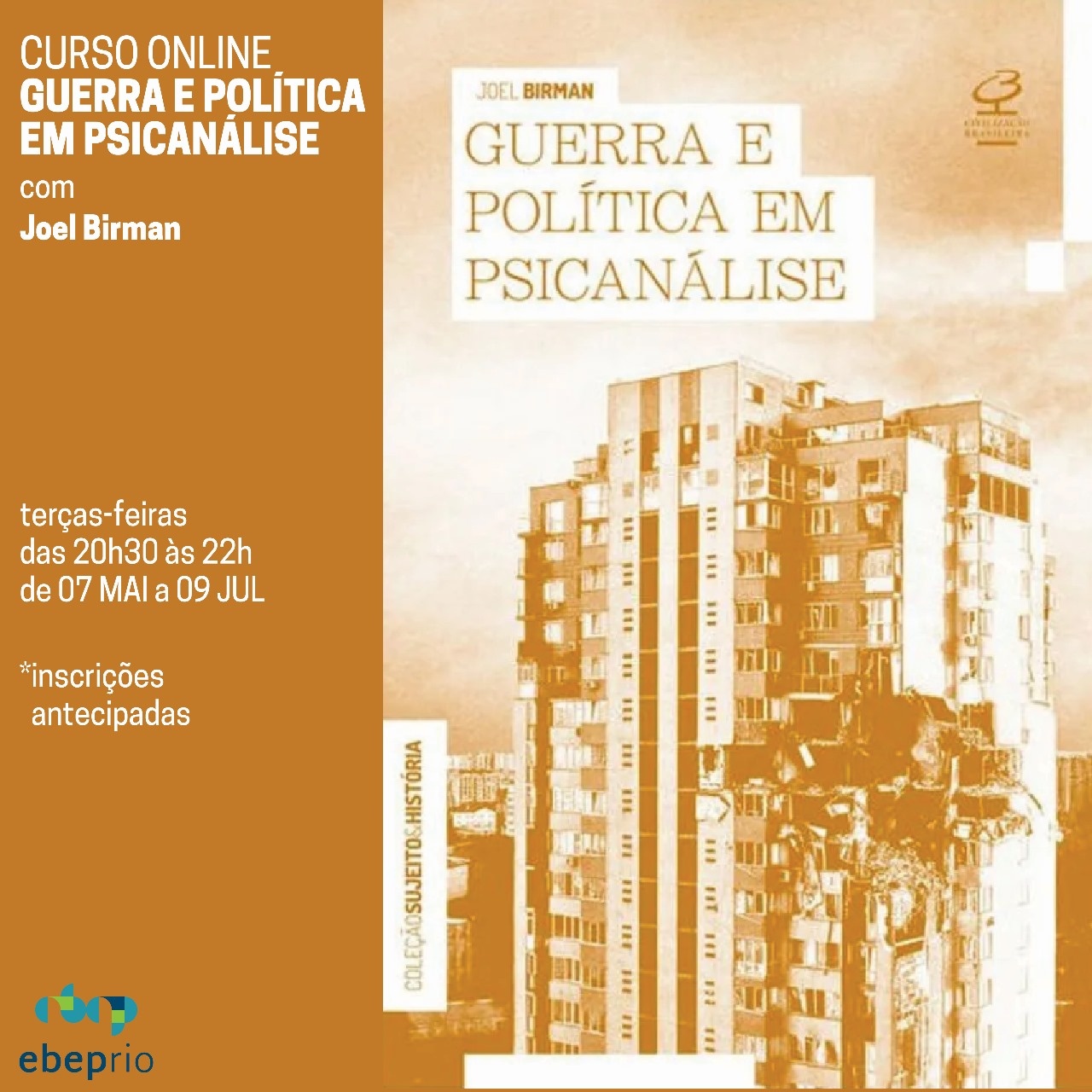 O curso vai problematizar a releitura dos textos ditos sociais e culturais, no que tange às relações de guerra e paz, assim como as suas influências nos movimentos psicanalíticos internacional e brasileiro.