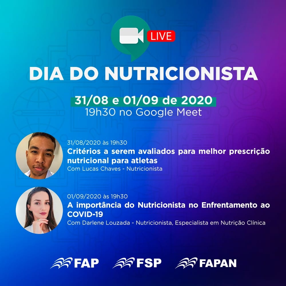 Celebrando essa data, e como forma de homenagear os Profissionais e os Acadêmicos do Curso de Nutrição, as Coordenações de Curso da FAPAN- Faculdade do Pantanal (Cáceres-MT), FAP- Faculdade de Pimenta Bueno (Pimenta Bueno-RO) e FSP- Faculdade São Paulo (Rolim de Moura-RO) realizarão nos dias 31/08 e 01/09 um encontro entre profissionais e acadêmicos de Nutrição.