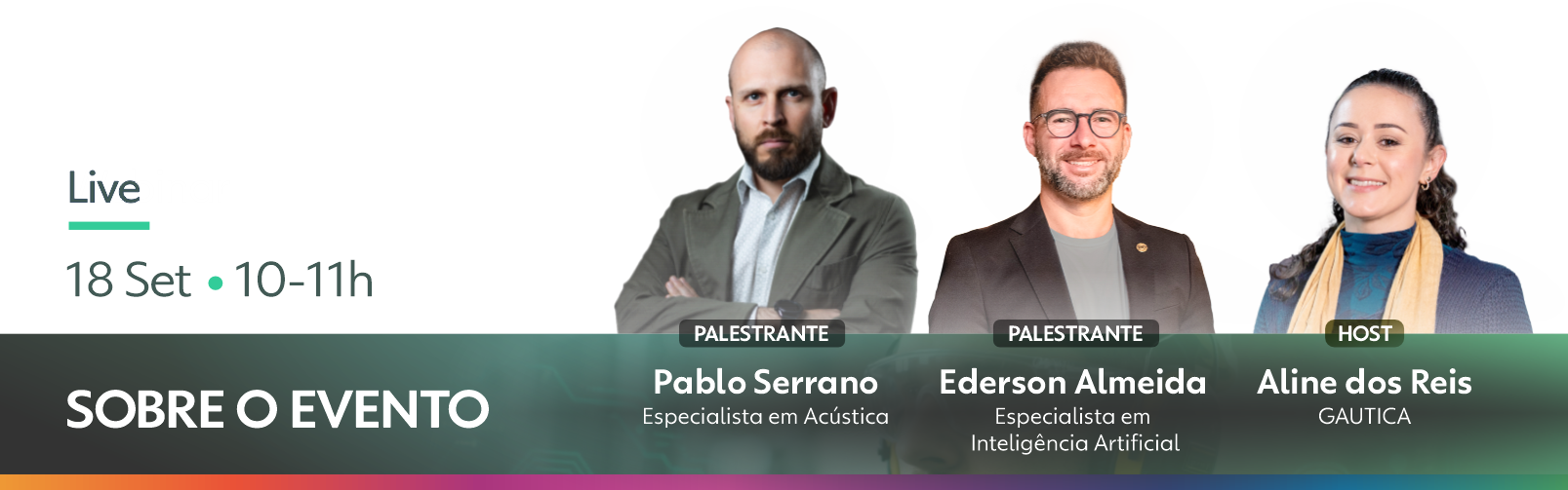Neste evento exclusivo e GRATUITO, você vai descobrir como unir Acústica + IA para transformar o gerenciamento de ruído em ambientes industriais e científicos. Um evento que conecta o conhecimento profundo da legislação e da engenharia acústica com o potencial revolucionário do Machine Learning, IoT e sistemas preditivos.