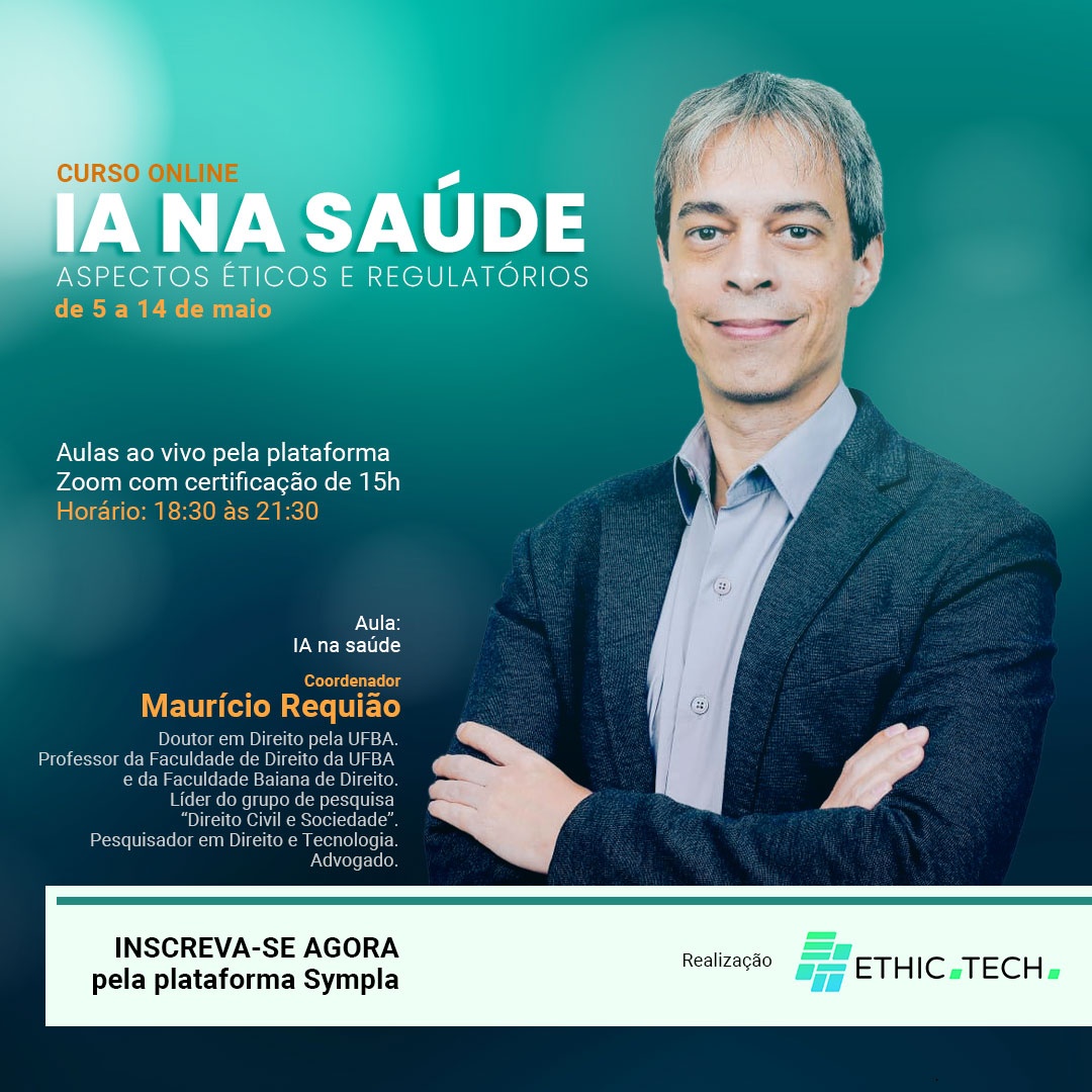 É com este cenário em mente que a Ethic Tech traz o curso “IA na Saúde: aspectos éticos e regulatórios”, coordenado pelo Prof. Maurício Requião. Com o objetivo de apresentar os pontos mais relevantes da área, foi estruturado um curso completo, que discutirá os mais relevantes desafios sobre o tema, contando, para tanto, com professores de excelência.