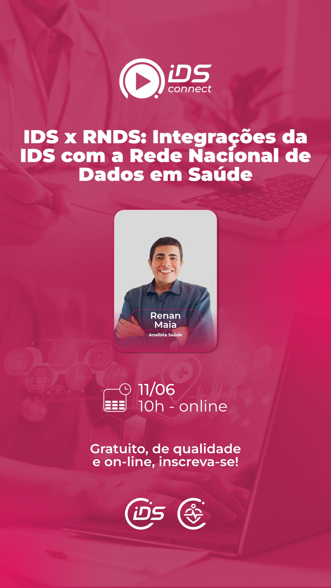 No dia 11 de junho às 10h, embarque conosco no IDS Connect, guiado pelo analista da IDS do produto Saúde, Renan Maia. Este evento promete uma imersão no assunto RNDS.