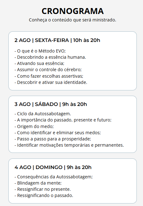 Programação completa do Imersão Inteligência Emocional Método EVO Sem Limites
