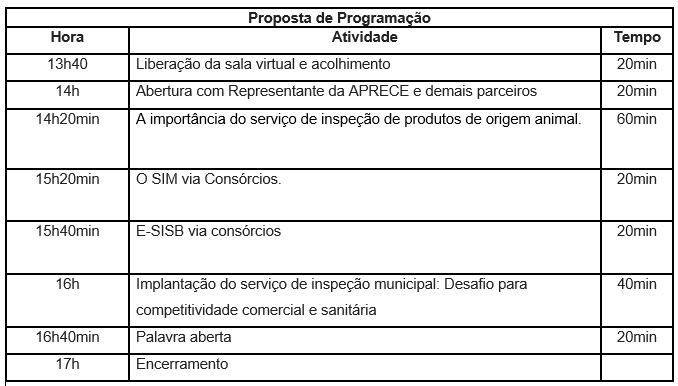 A Associação dos Municípios do Estado do Ceará (Aprece) por meio de sua Escola de Gestão (EGPM/Aprece) e da área técnica de Agricultura, Meio ambiente e Desenvolvimento Rural, realiza no dia 21de agosto de 2025, das 14h às 17h, a capacitação on-line sobre Inspeção Municipal: Desafios e Estratégias para a Qualificação Sanitária e Comercial dos Produtos de Origem Animal, visando capacitar gestores públicos, técnicos municipais e representantes de consórcios sobre a importância e os mecanismos de implantação, gestão e integração do Serviço de Inspeção Municipal (SIM), com ênfase na segurança sanitária, na competitividade dos produtos de origem animal e na atuação em rede via consórcios públicos.