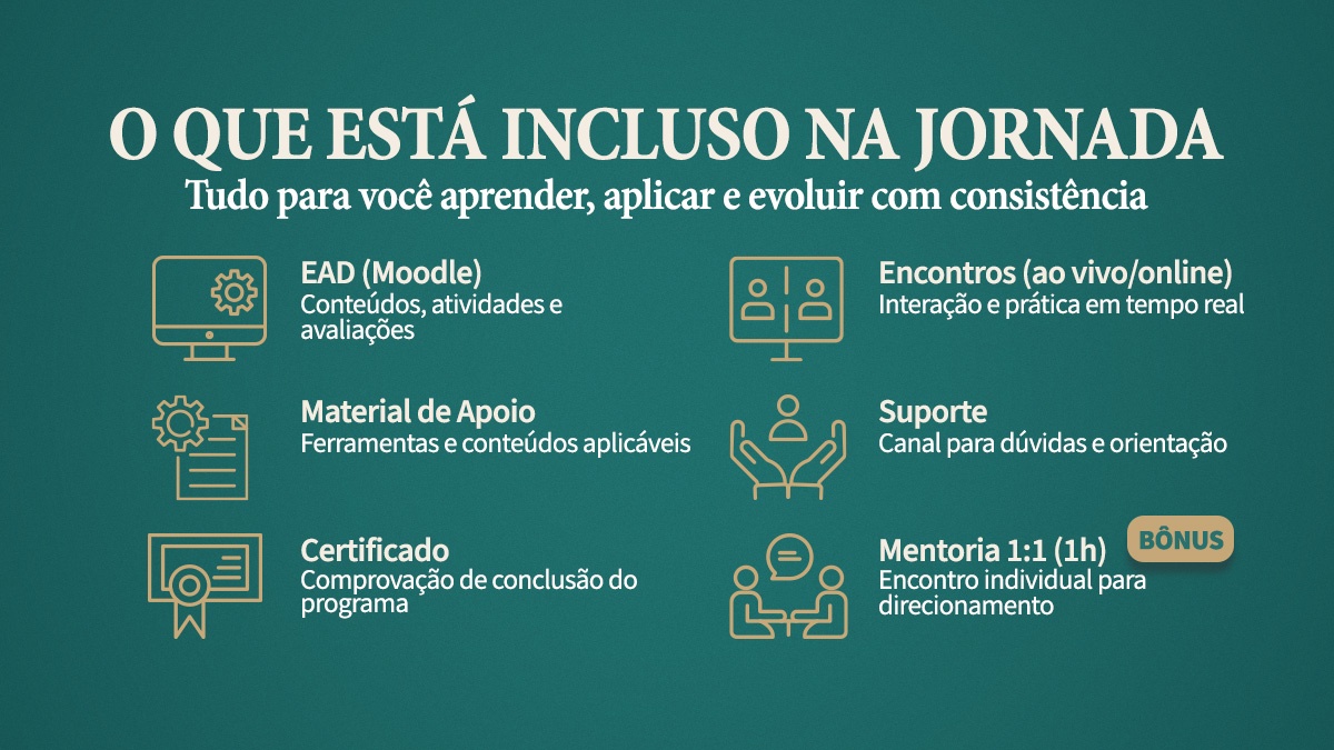 Você lidera pessoas, toma decisões difíceis e precisa entregar resultados em um cenário que muda rápido. A Jornada da Liderança foi criada para apoiar líderes que buscam clareza, consistência e impacto — com um caminho estruturado para evoluir na prática.