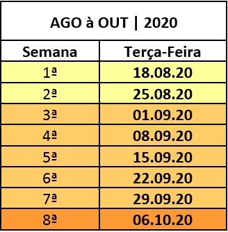 18 ago - 2020 • 19:30 > 06 out - 2020 • 21:30
