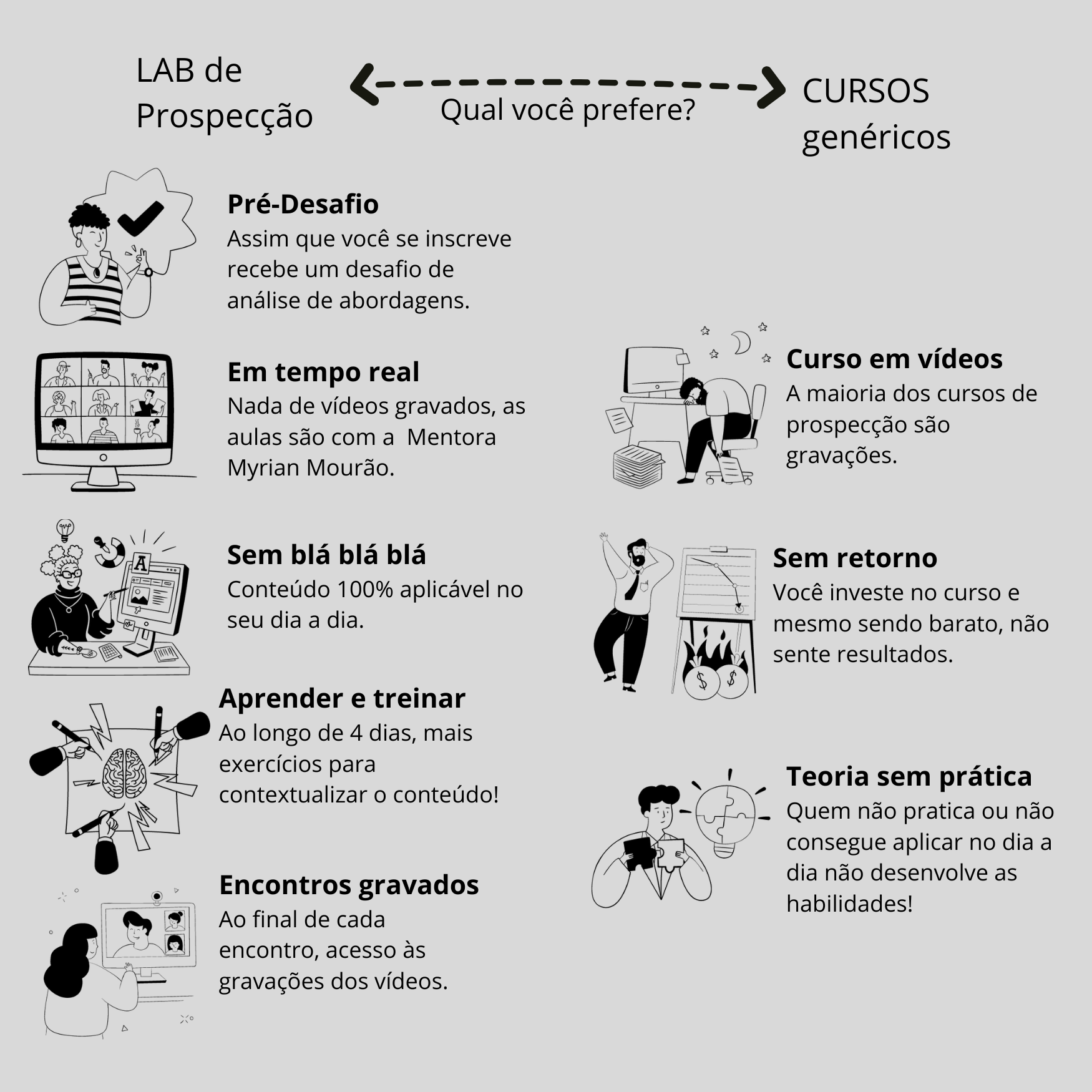 O Lab de Prospecção de Vendas B2B é um programa de desenvolvimento de habilidades em abordagens com métodos, experimentação (exercícios e desafios).