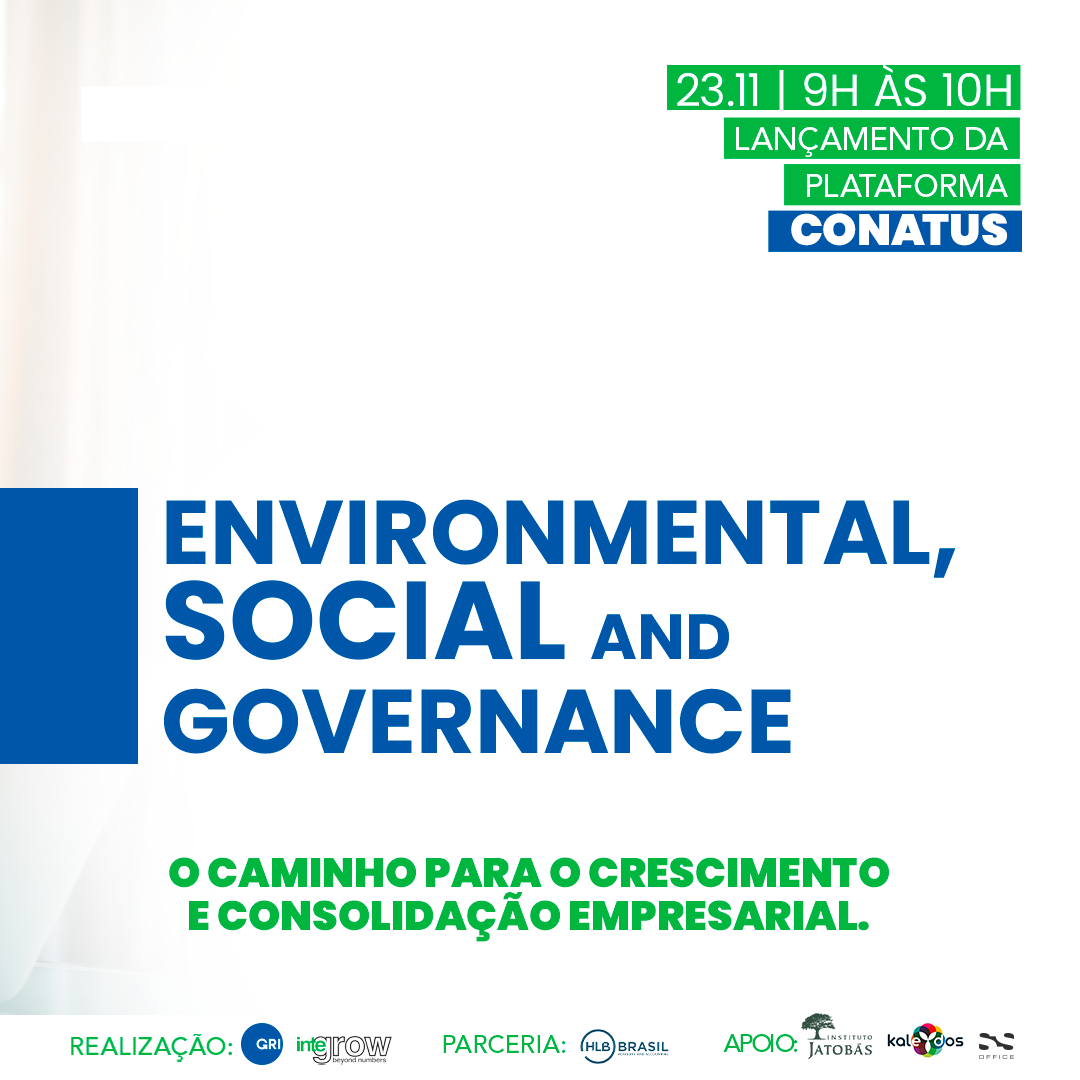 No dia 23/11 das 9h às 10h, a Integrow lança, em parceria com a GRI e com a HLB, a plataforma Conatus, num evento virtual com inscrição gratuita a todas empresas interessadas, quando também haverá um breve debate sobre as tendências e novidades em ESG.